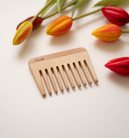 Nachhaltiges Buchenholz macht diesen Kamm langlebig und robust.