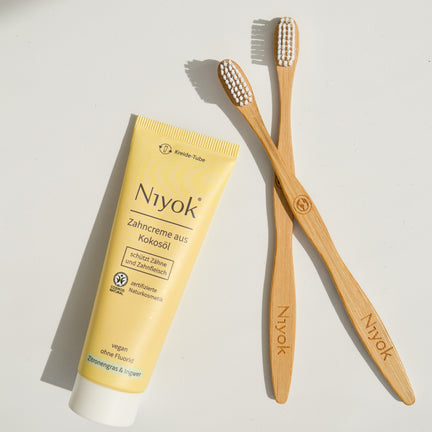Unsere Choosebrushes bestehen aus schnell nachwachsenden, natürlichen Bambus und Borsten aus Rizinusöl.