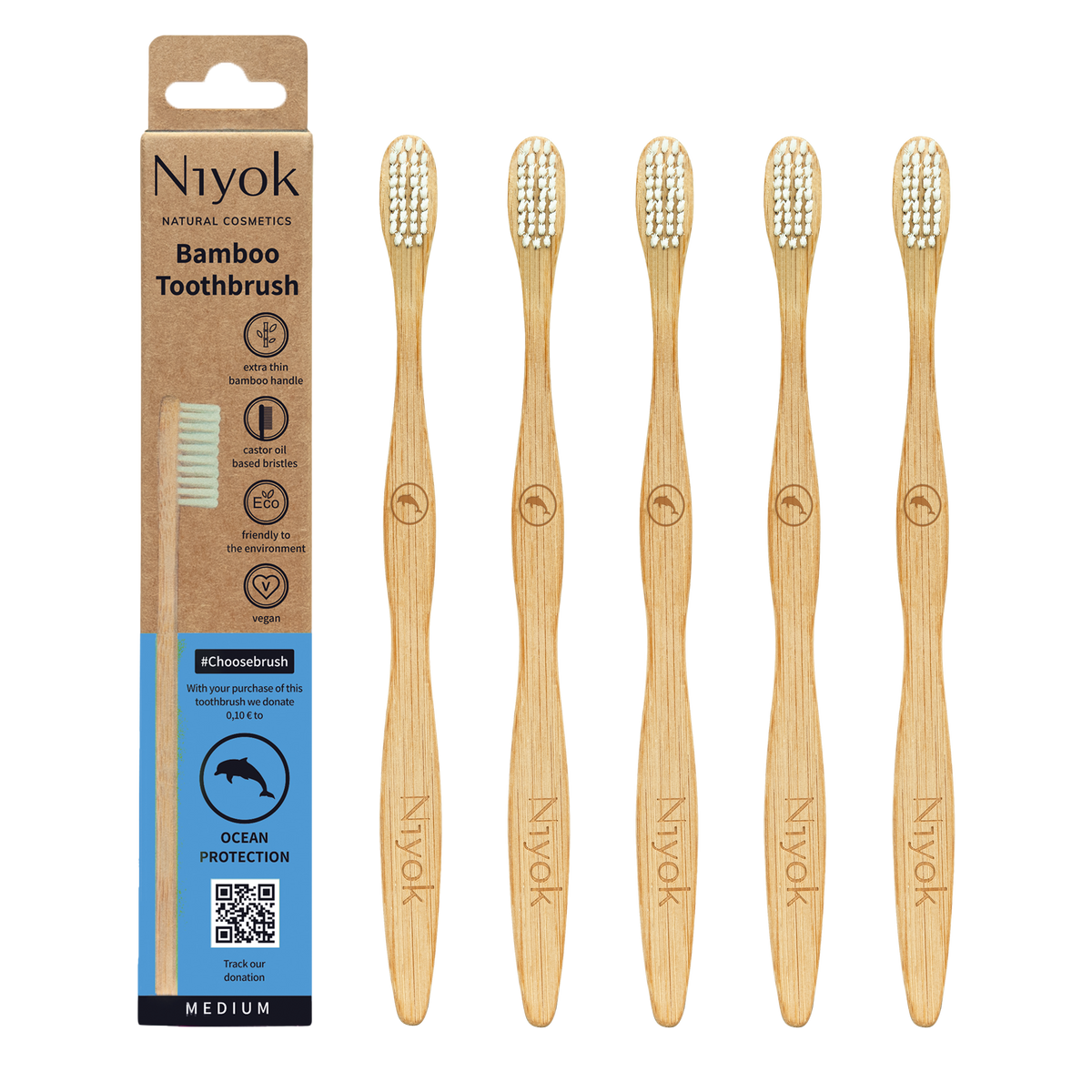 Unsere Choosebrushes bestehen aus schnell nachwachsenden, natürlichen Bambus und Borsten aus Rizinusöl.