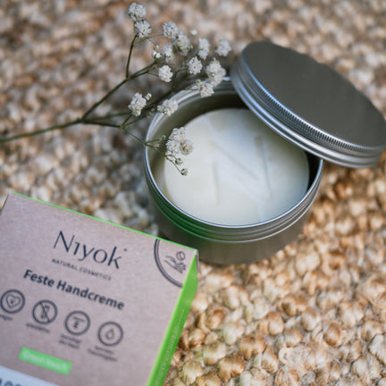 Tipp: Wenn die Handcreme leer ist, lässt sich die Dose für die Aufbewahrung deiner festen Produkte verwenden oder sogar upcyclen als Kerzengehäuse oder Lippenbalsam.