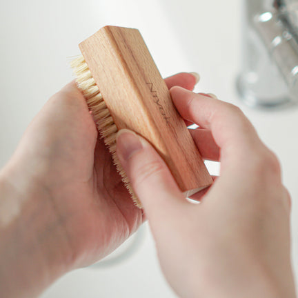 Unsere Handwaschbürste mit groben Borsten ist der ideale Helfer im Alltag. Egal ob im Gäste-WC, im Haushalt oder bei der Maniküre. Die hochwertigen, veganen Fibreborsten entfernen jeglichen Schmutz von Händen und unter den Fingernägeln. Die Handwaschbürste besteht aus nachhaltigem Buchenholz, das mit Leinöl behandelt wurde, um eine lange Lebensdauer zu gewährleisten. Die optimale Größe und eine umlaufende Griffmulde sorgen für angenehmen Halt der Bürste bei Anwendung. Nach der Anwendung sollte die Bürste mit den Borsten nach unten an einem luftigen Ort gut trocknen können, damit das Holz lange schön bleibt.